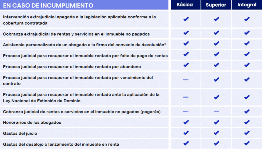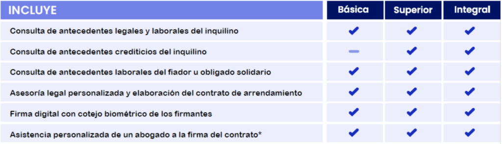 Superior  Si te interesa estar protegido durante o después de la vigencia del contrato o de la extinción de dominio  Todo lo anterior +protección ante la extinción de dominio + recuperar el inmueble si al termino del contrato no se sale el inquilino