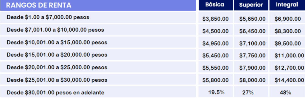 La cobertura básica desde $3,850 pesos, ideal para rentas bajas.